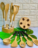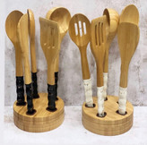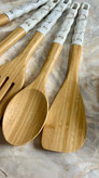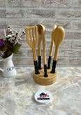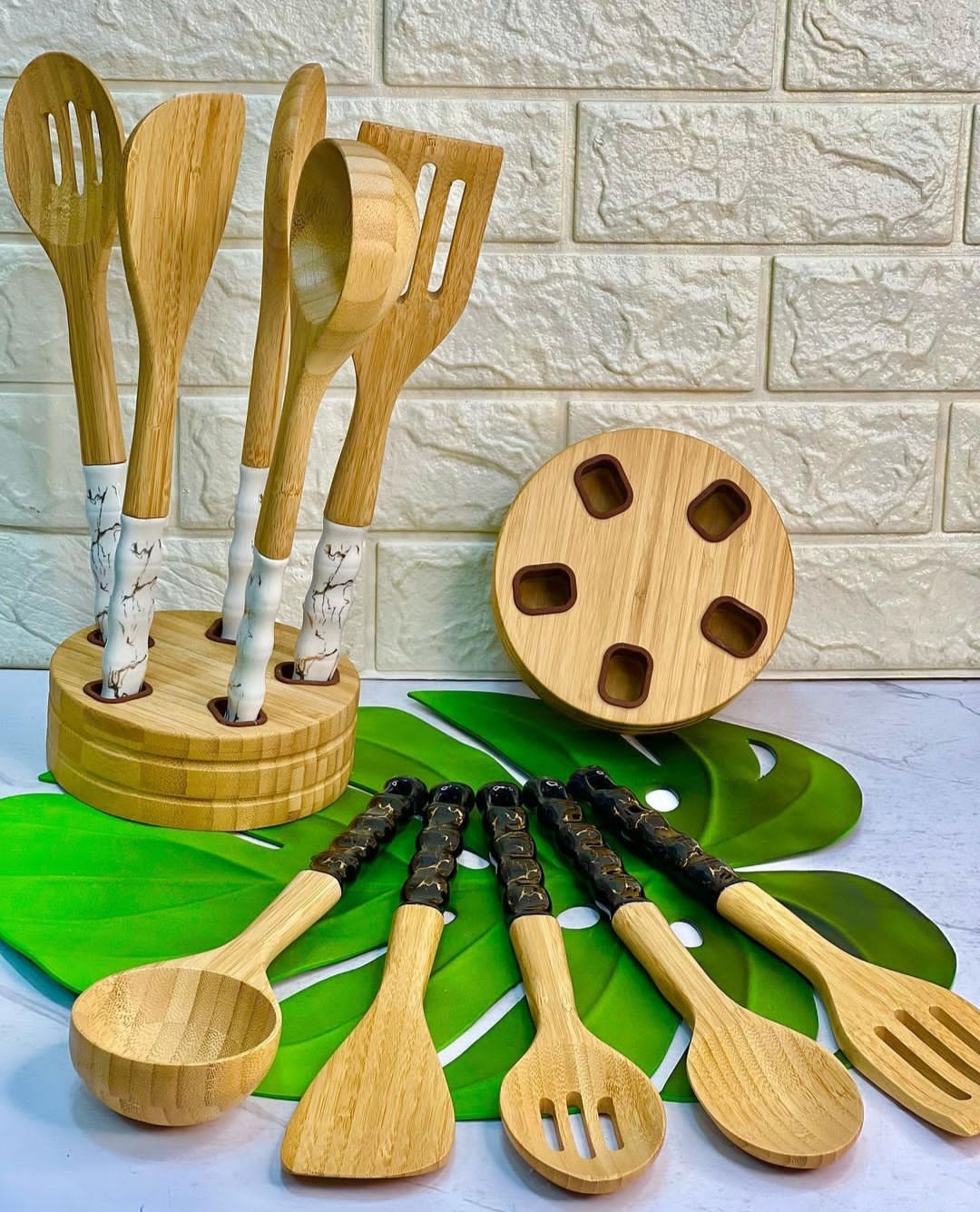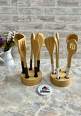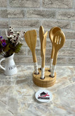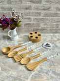 ست ۶ پارچه کفگیر ملاقه بامبو دسته سرامیکی