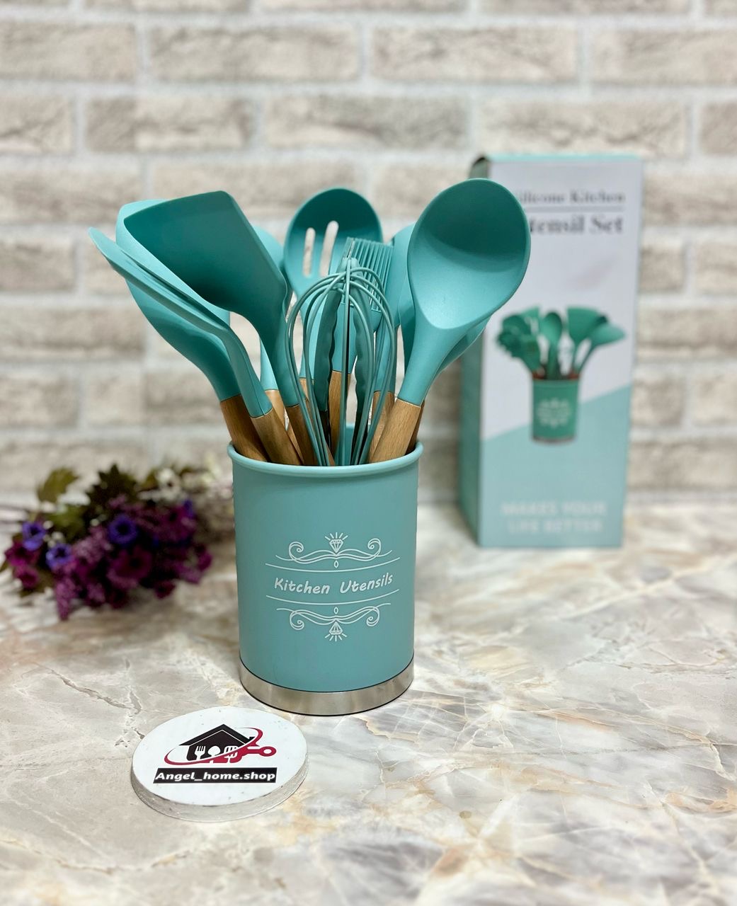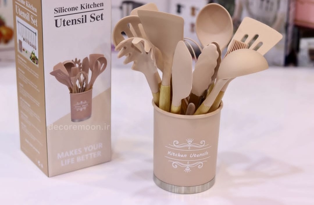 ست کفگیر ملاقه سیلیکونی دسته بامبو وارداتی اورجینال