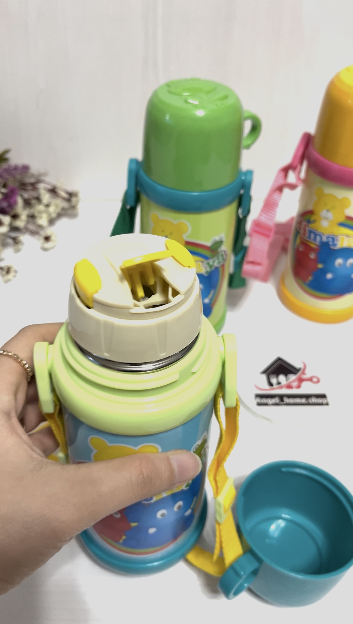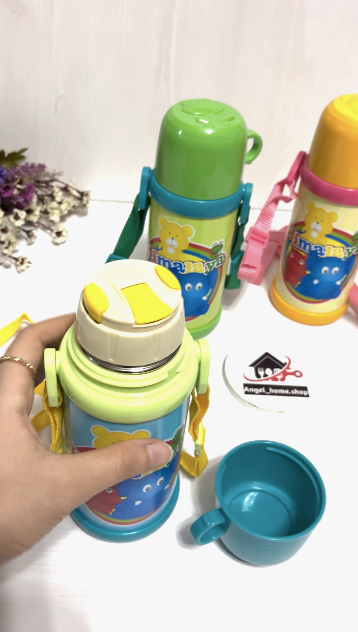 فلاسک(قمقمه) وکیوم کودک درب لیوانی ۶۰۰ میل طرح کارتونی بند دار