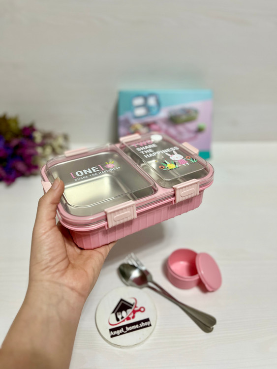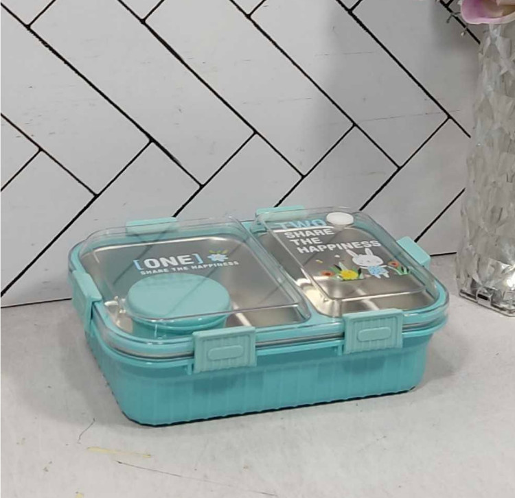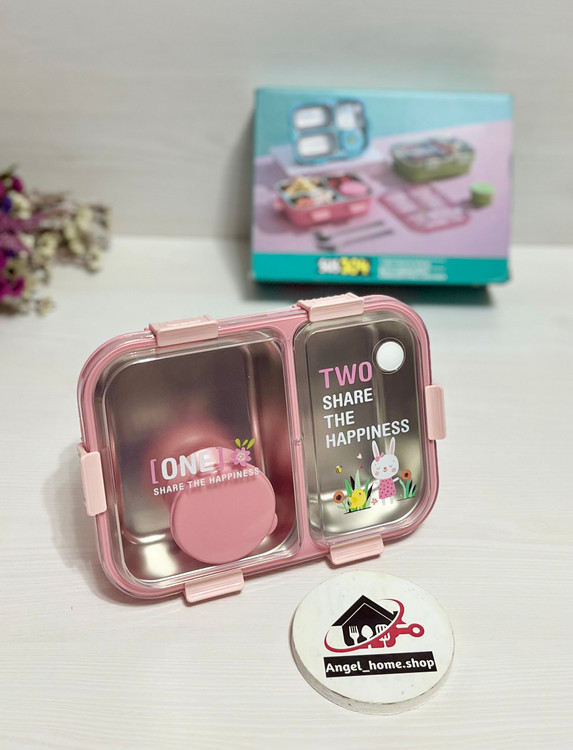 لانچ باکس(ظرف غذا) دو خانه واشردار قاشق چنگال استیل و کاسه دربدار