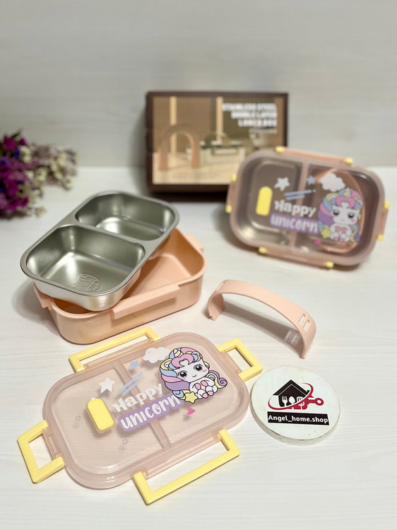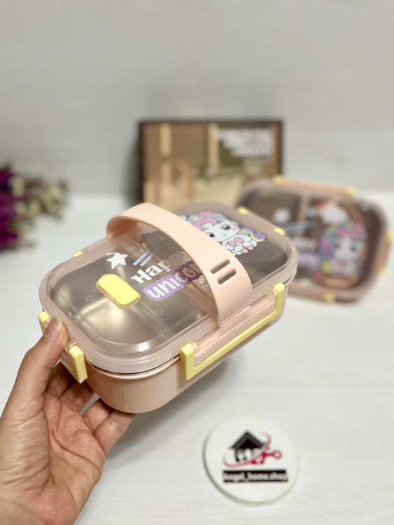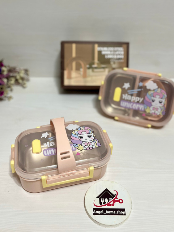 لانچ باکس(ظرف غذا) دو خانه واشردار داخل استیل و دسته دار یونیکورن